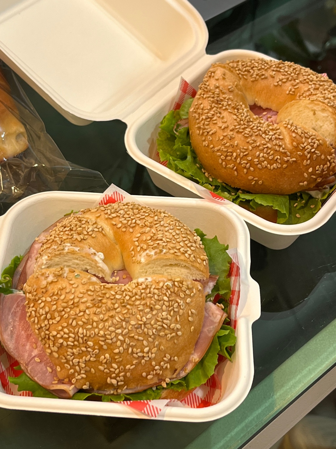 이 베이글은 잠봉햄, 크림치즈, 로메인, 베이글, 다량의 참깨 만으로 구성된 얼핏 보면 단순해보이는 빵이다.